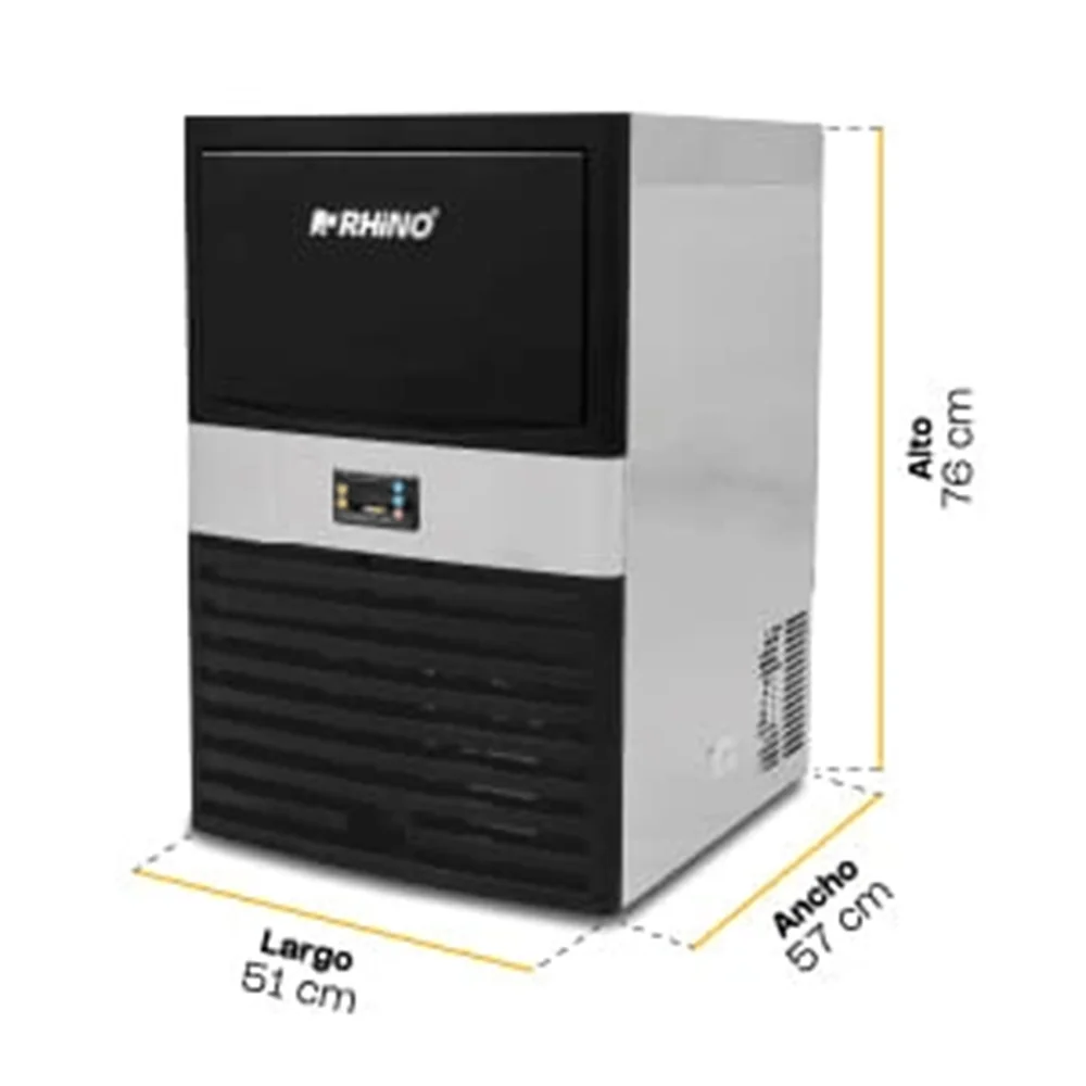 La fábrica de hielo FAHIEL-40 de Rhino es una solución eficiente para negocios que requieren producción constante en espacios reducidos. Su diseño compacto y de acero inoxidable garantiza durabilidad, mientras que su sistema automático facilita el mantenimiento diario. Genera hielos en forma de cubo de 2.2 cm, ideales para bebidas, alimentos o conservación comercial.