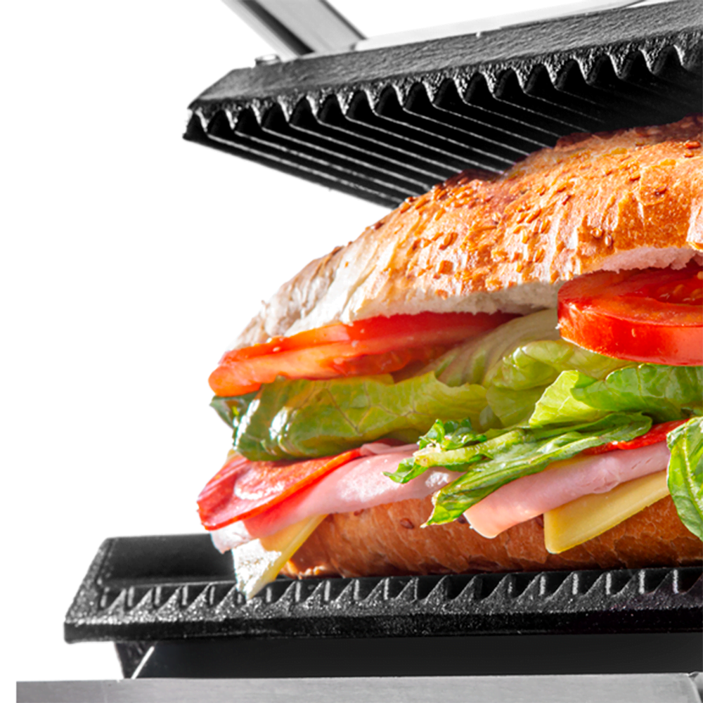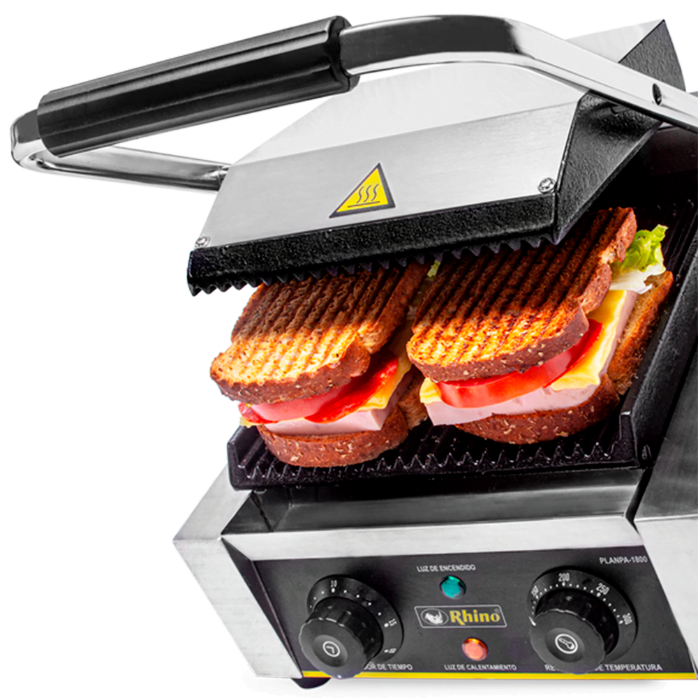- Perfecta para preparar paninis, tortas, baguettes, sándwiches y otros alimentos prensados.