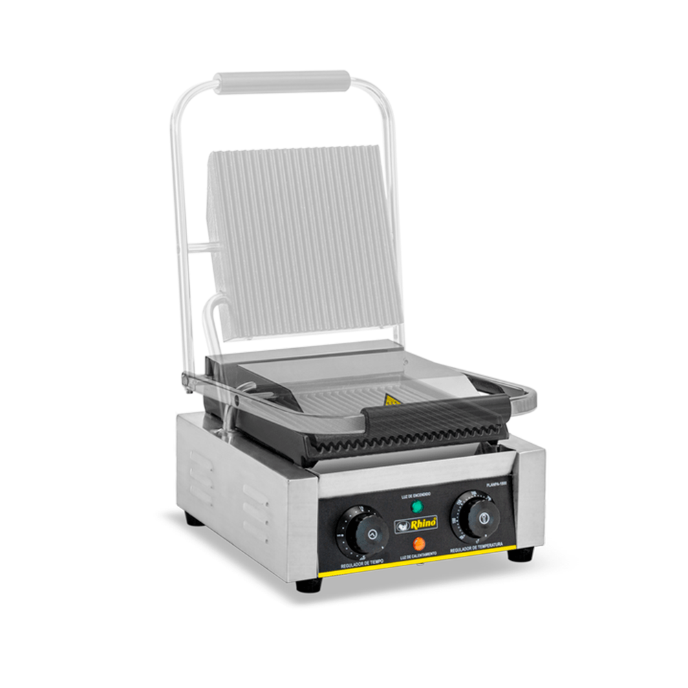 La plancha para panini PLANPA-1800 de Rhino es un equipo compacto y eficiente, ideal para cocinas profesionales que requieren rapidez, durabilidad y resultados uniformes. Su construcción en hierro fundido esmaltado y acero inoxidable garantiza una cocción óptima y una limpieza sencilla.